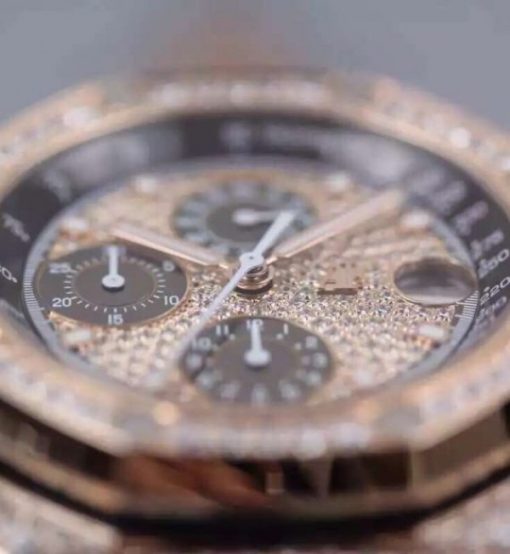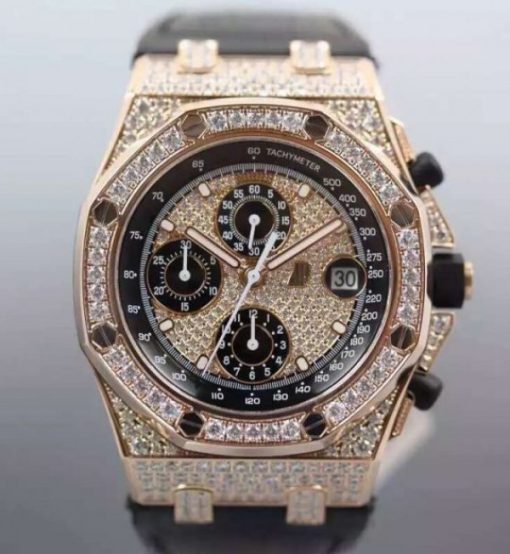 Replica Audemars Piguet JF Royal Oak Offshore RG Full Paved Diamonds Leather Strap A7750