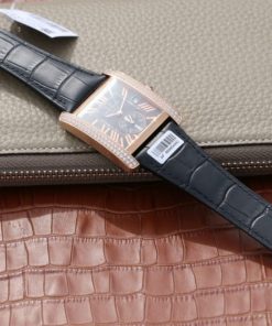 Replica Cartier Tank MC RG Gray Textured Dial Diamonds Bezel Leather Strap