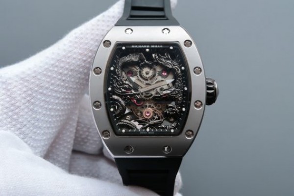 Replica Richard Mille RM057 Dragon Phoenix SS Case Black Dragon Dial Black Rubber Strap