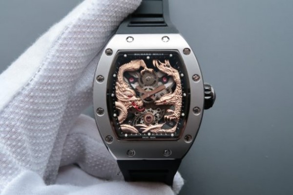 Replica Richard Mille RM057 Dragon Phoenix SS Case RG Dragon Dial Black Rubber Strap