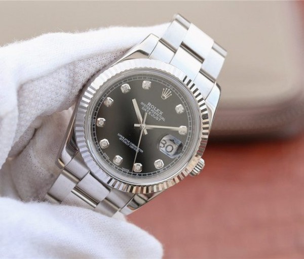 Replica Rolex DateJust 41mm 126334 Fluted Bezel Black Dial Diamonds Markers Jubilee Bracelet A3235