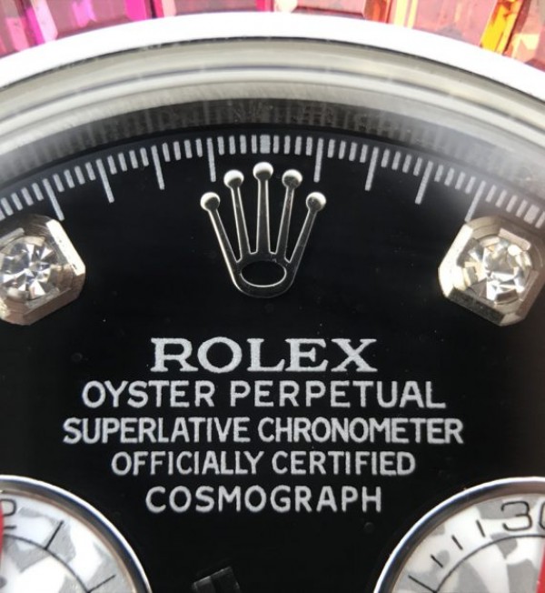 Replica Rolex Daytona 116599 Colorful Crystal Bezel Black Dial SS Bracelet A7750