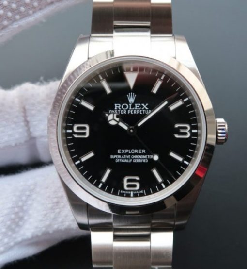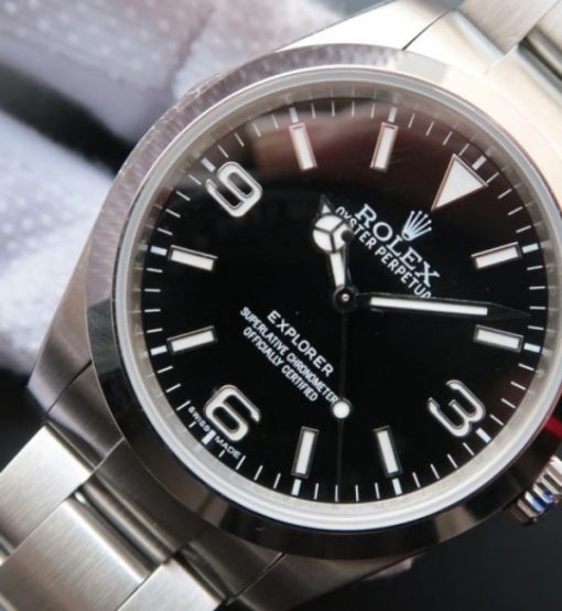 Replica Rolex EXPLORER I 214270 39mm Noob Black Dial SS Bracelet A2824