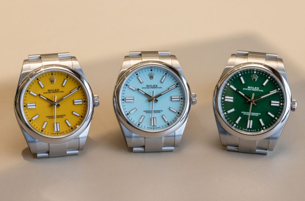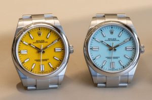 Well, the arrival of the new Rolex Oyster Perpetual 41 signals the end of the 39mm ref. 114300 models along with the white, grape, grey and blue dials – or at least the ones we knew up until today. Another factor that has generated much debate is the incorporation of eye-catching colours on the dial as part of the permanent collection. I like them very much indeed, and they tie in very nicely with a chapter in Rolex’s history.