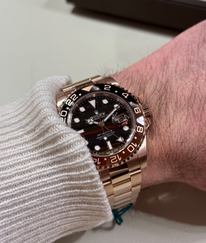 And finally, the GMT-Master II in Everose with a tiger-eye dial, a nod to Rolex’s stone-dial history and a trend that’s become massively popular in the AAA+ copy Rolex watches space among vintage connoisseurs.